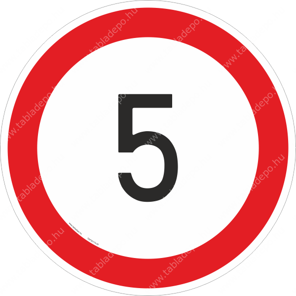 Kör alakú műanyag tábla, átmérője 200 mm. Fehér alapon középen fekete 5-ös szám, körben vörös szegéllyel.