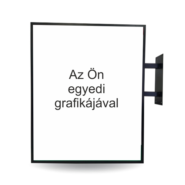 Kétoldalas cégér, szögletes, egyedi grafikával