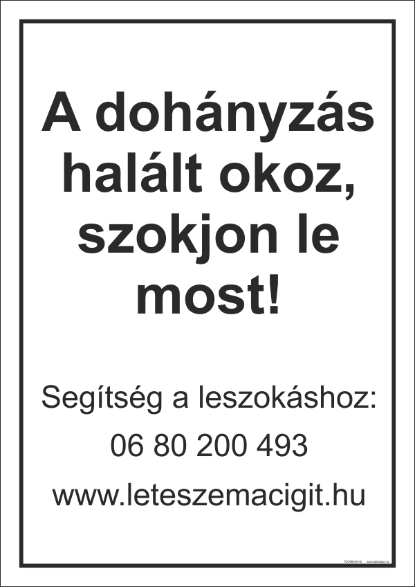 A dohányzás halált okoz, szokjon le most tábla - A/2