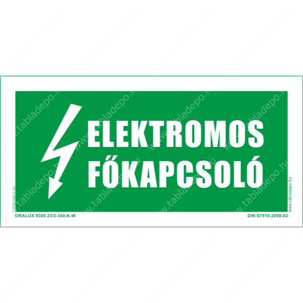 Elektromos főkapcsoló utánvilágító tábla - zöld - 150x75 mm