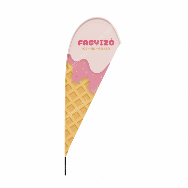 A strandzászló hatékony reklám- és tájékoztató eszköz kültéri és beltéri használatra, fagyizók, fagylaltot áruló cukrászdák egyértelmű figyelemfelkeltő jelölésére.