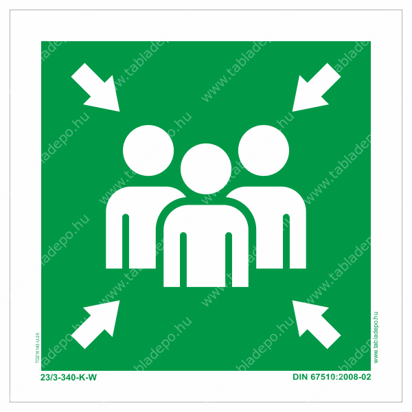Gyülekezési hely tábla: biztonságos hely, gyülekezőhely, gyülekezési pont jelölésre szolgáló tábla.