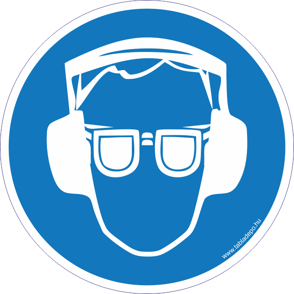Hallásvédő és védőszemüveg használata kötelező piktogram - tábla