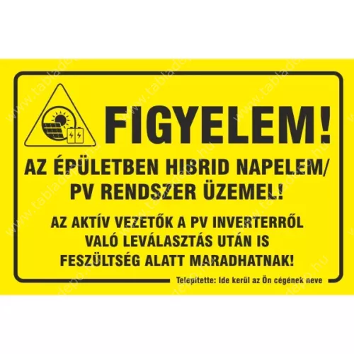 Hibrid napelemes rendszer üzemel tábla - az Ön cégének nevével egyediesítve