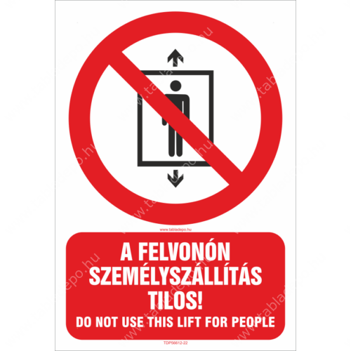 A felvonón személyszállítás tilos - Do not use this lift for people kétnyelvű tábla