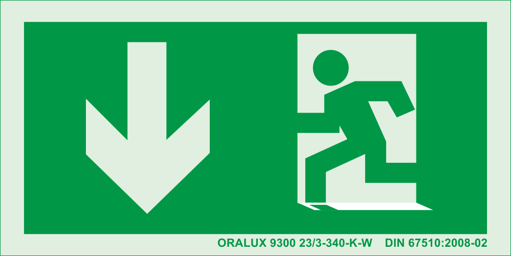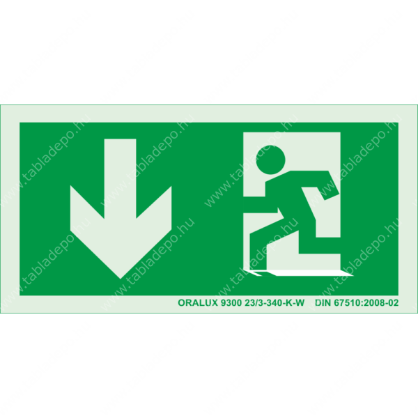 Menekülési útvonal utánvilágító tábla – le ajtóval bal - 200x100 mm