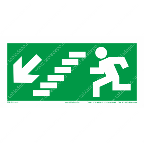 Menekülési útvonal utánvilágító tábla lépcsőn balra le - 400x200 mm