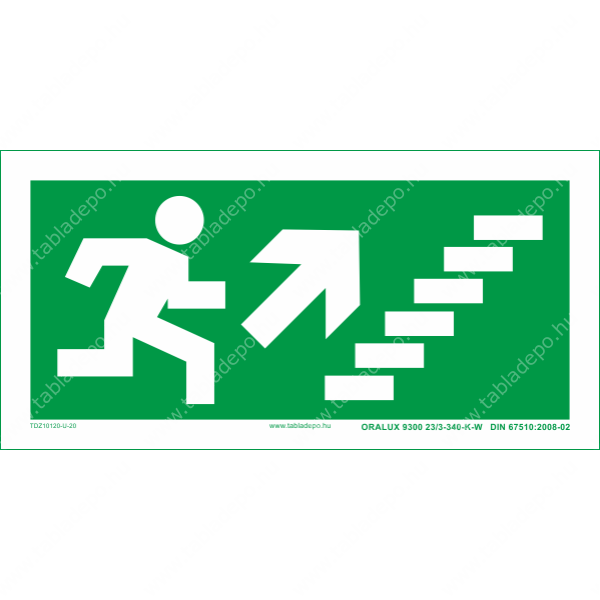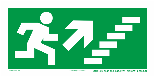 Menekülési útvonal utánvilágító tábla lépcsőn jobbra fel - 200x100 mm