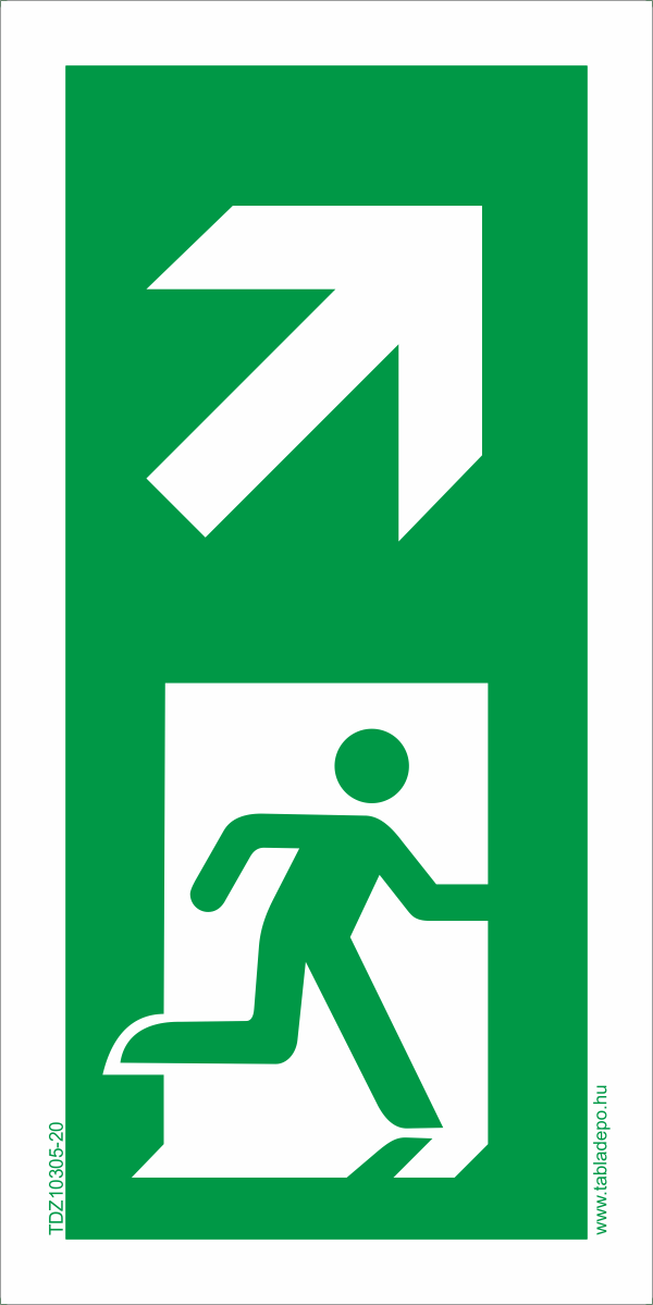 Menekülési útvonal utánvilágító tábla - álló – jobbra fel - 100x200 mm