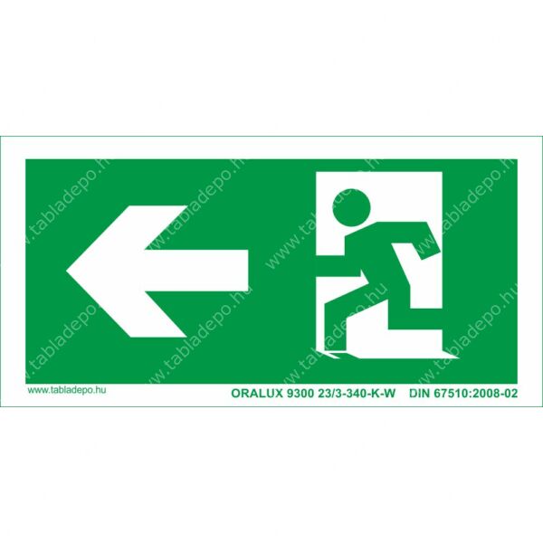 Menekülési útvonal utánvilágító tábla – balra - 200x100 mm