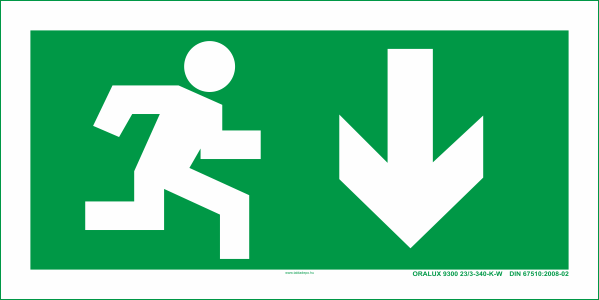 Menekülési útvonal utánvilágító tábla – jobb - lefelé mutató nyíl - 200x100 mm