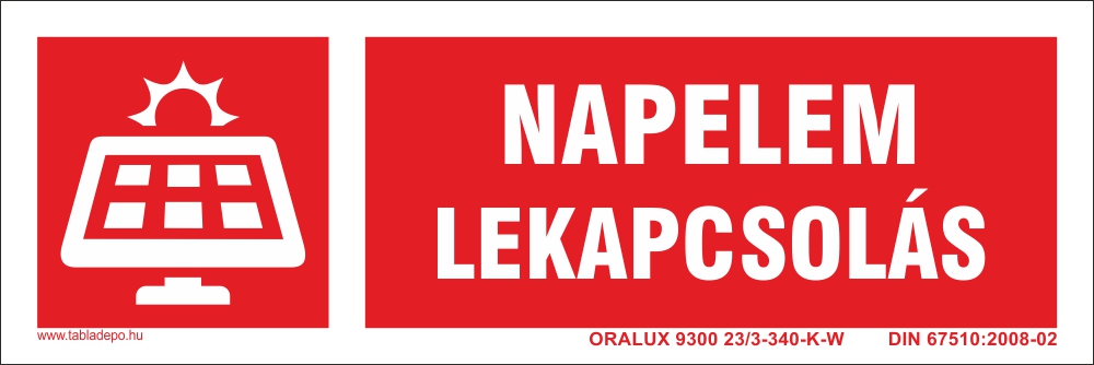 Napelem lekapcsoló tábla – utánvilágító - 300x100 mm