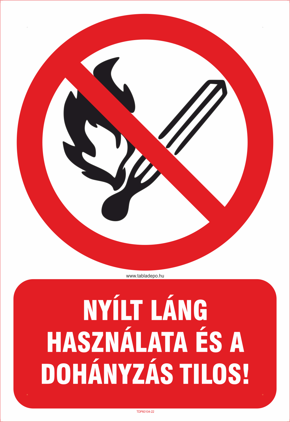 Nyílt láng használata tilos tábla