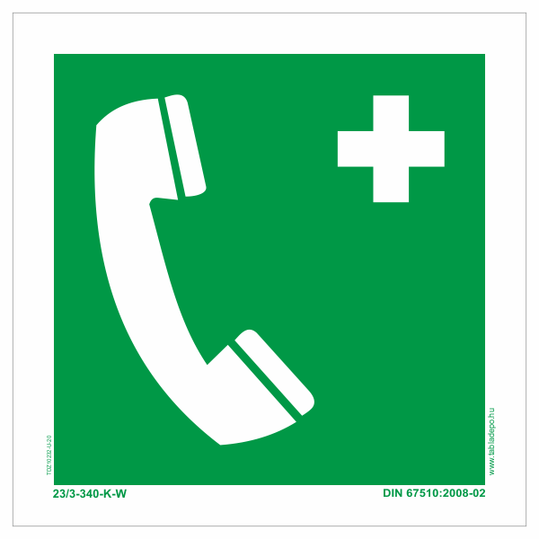 Segélyhívó telefon tábla – utánvilágító - 200x200 mm
