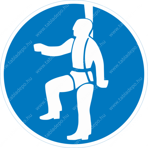 Testheveder használata kötelező piktogram tábla. Testheveder viselését előíró munkavédelmi biztonsági jelzés.