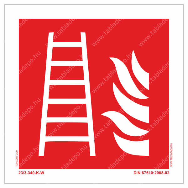 - Négyzet alakú, piros alapon fehér létra és láng piktogram, fehér kerettel.
