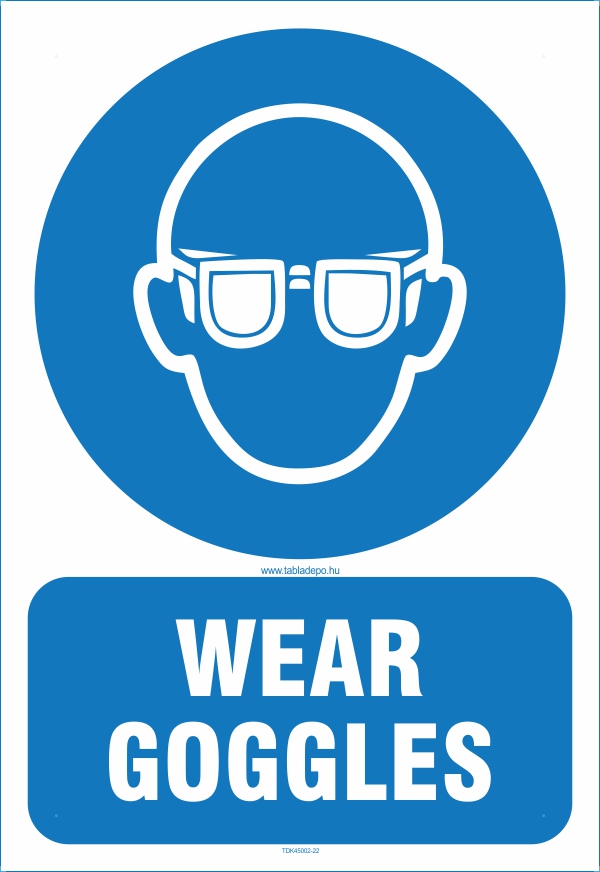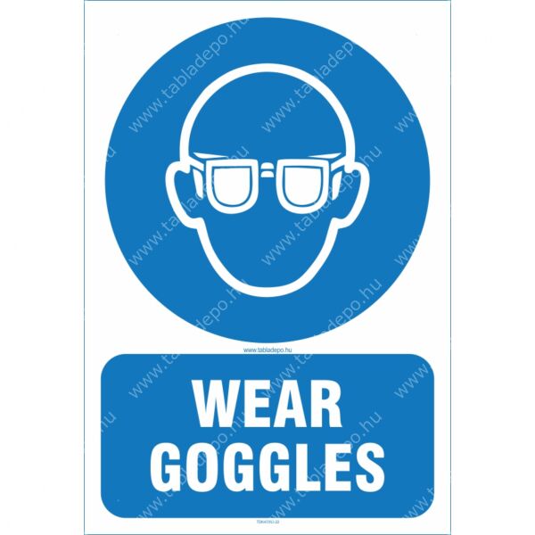 Wear goggles sign - angol feliratú védőszemüveg használata kötelező matrica