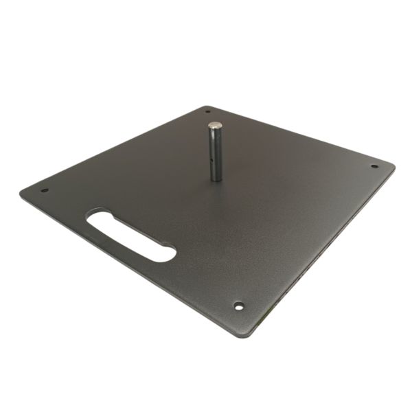 4 kg tömegű, 40x40 cm méretű feketére festett acél lemez a közepén furattal, ahová a tartozék tüskét lehet rögzíteni. Erre a tüskére lehet a zászlórudat ráhúzni.